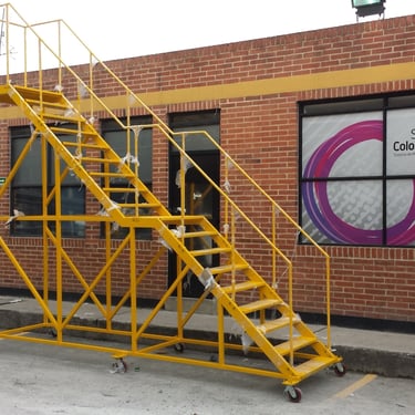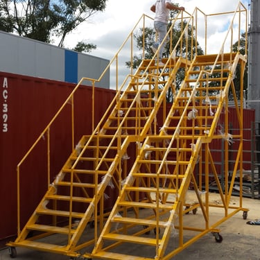 Diseño y fabricación de escaleras industriales fijas o móviles, en acero inoxidable AISI 304 aptas para uso en industrias de alimentos y para el lavado a chorro directo, o en acero al carbono estructural. Escaleras móviles tipo avión / aeropuerto adecuadas para almacenes e industrias en las que se requiera desplazamiento de personal a alturas con capacidades variables de acuerdo a la necesidad.